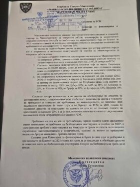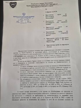 Дополнително уште сега најавуваме поддршка на протестот или штрајкот кој тие би го организирале за повисоки плати, а доколку не им е познатно им укажуваме дека согласно член 127 од Законот за внатрешни работи бодовите и додатоците на плата ги утврдува Министерот во согласност со најбројниот репрезентативен синдикат за што сега ќе имаат можност да не се согласат.